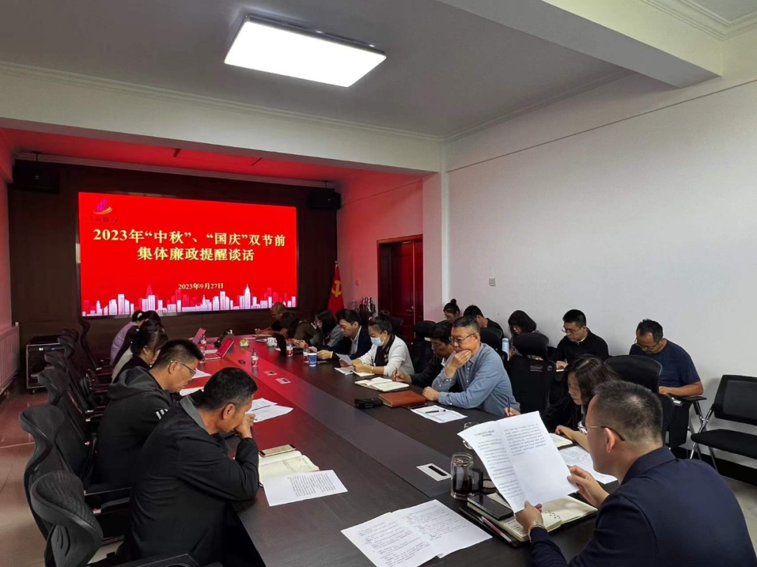 2023年中秋、國慶兩節(jié)將至,為進一步嚴明紀律規(guī)矩,不斷鞏固和拓展作風建設成效,增強干部職工廉潔自律意識,營造風清氣正節(jié)日氛圍,按照市紀委工作要求,9月27日上午,市城投集團公司組織開展“中秋、國慶”節(jié)前廉政教育和廉政集體提醒談話,集團公司領導班子成員和各直屬黨組織書記、各部室負責人參加會議,集團公司黨委副書記、總經(jīng)理巨德富傳達了市紀委《關于印發(fā)〈關于兩起違反中央八項規(guī)定精神典型案例的通報〉〈關于2023年中秋、國慶期間進一步嚴明紀律的通知〉通報》文件精神。