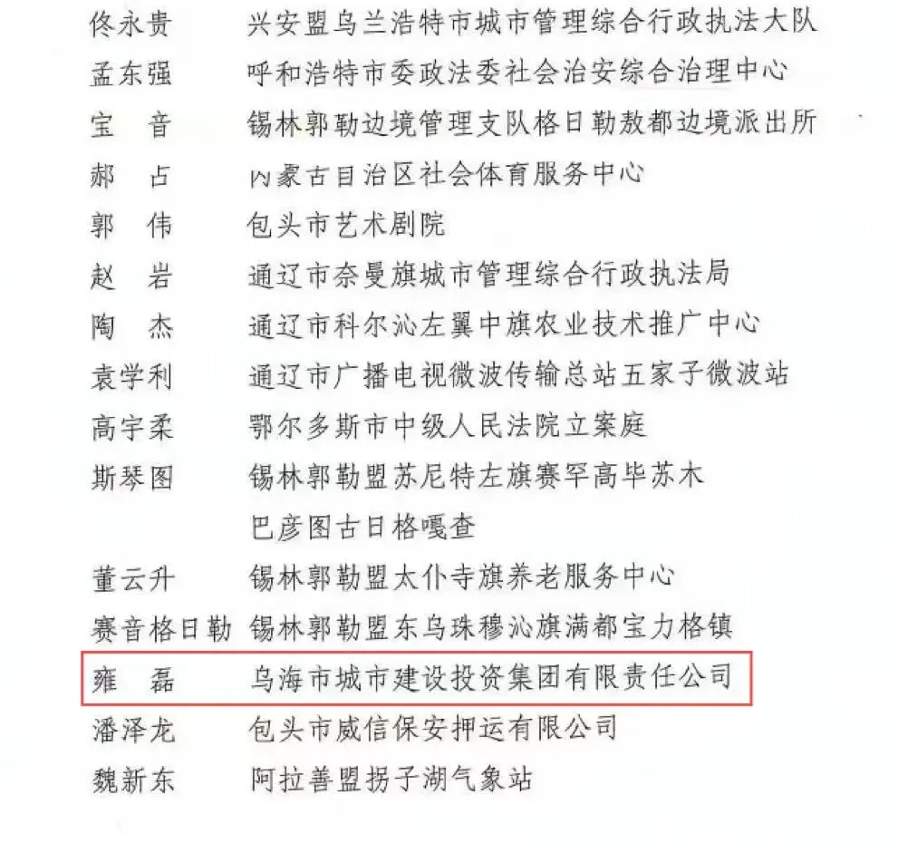 近日,內(nèi)蒙古自治區(qū)黨委宣傳部、內(nèi)蒙古自治區(qū)退役軍人事務(wù)廳、內(nèi)蒙古軍區(qū)政治工作局聯(lián)合開展2024年度“最美退役軍人”學(xué)習(xí)宣傳活動,全區(qū)共33名個人榮獲2024年度“最美退役軍人”稱號,其中,烏海市城投集團雍磊同志獲評,為市國資國企系統(tǒng)唯一獲評人員。