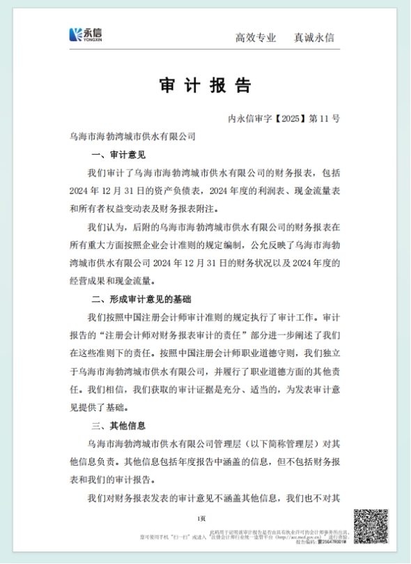 - 2025-04-22烏海市海勃灣城市供水有限公司2025年第一季度信息公開