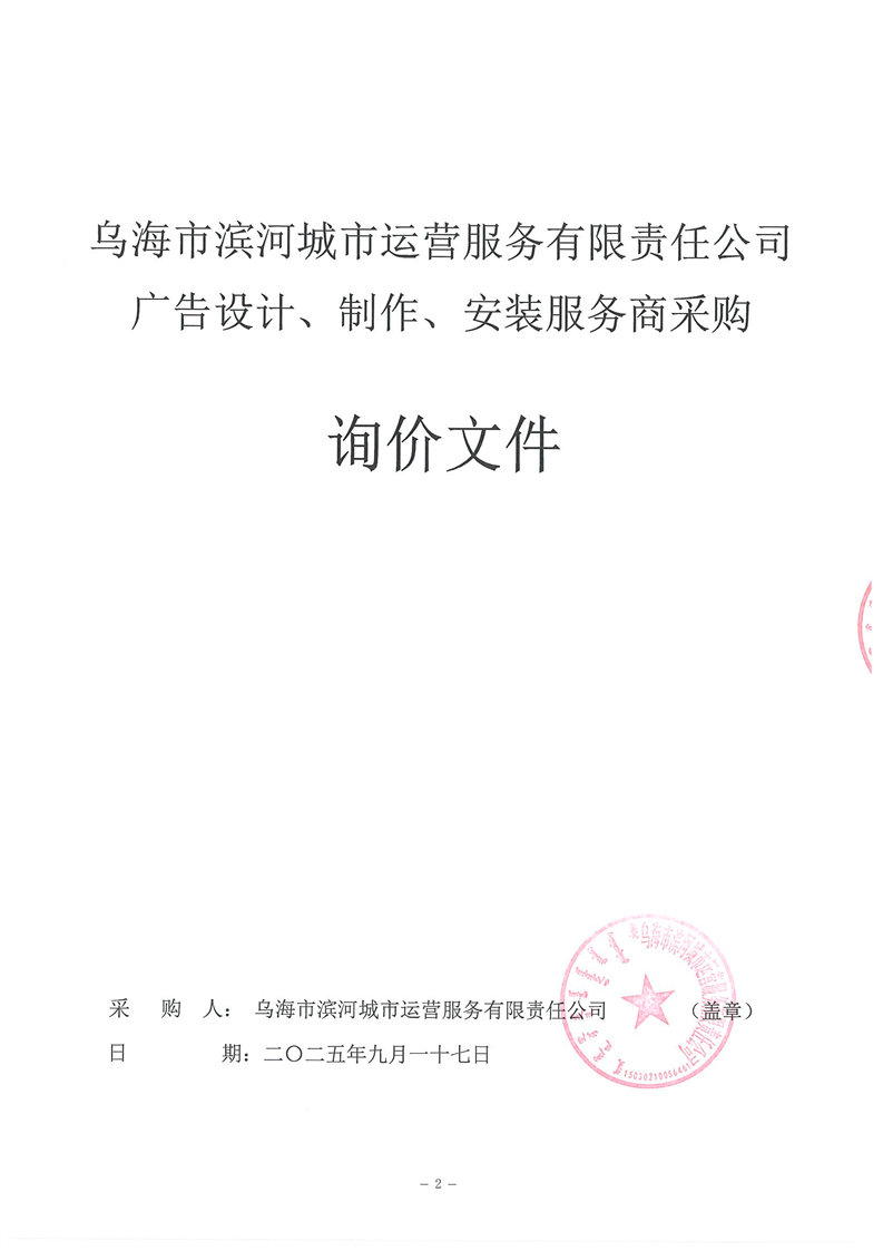 - 2025-12-15“烏海城投集團”微信公眾平臺服務(wù)項詢價公告