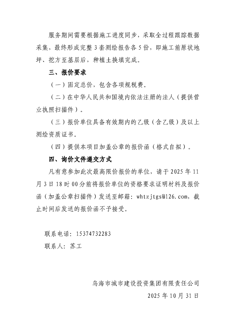 - 2025-12-15“烏海城投集團”微信公眾平臺服務項詢價公告