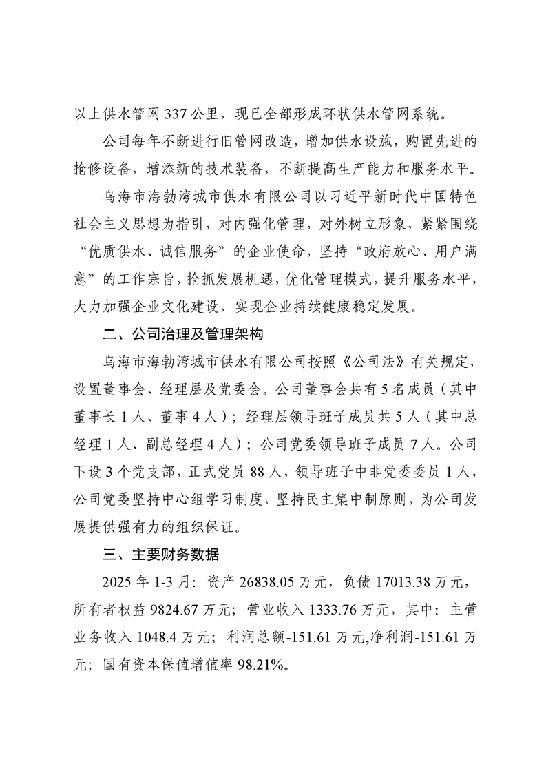 - 2025-10-22烏海市海勃灣城市供水有限公司2025年第三季度信息公開(kāi)
