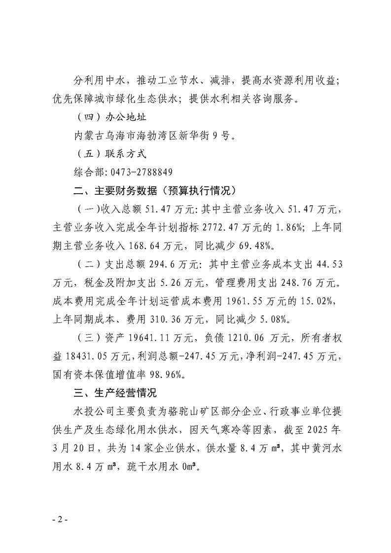 - 2025-07-28烏海市水務(wù)投資有限責(zé)任公司2025年第二季度信息公開(kāi)