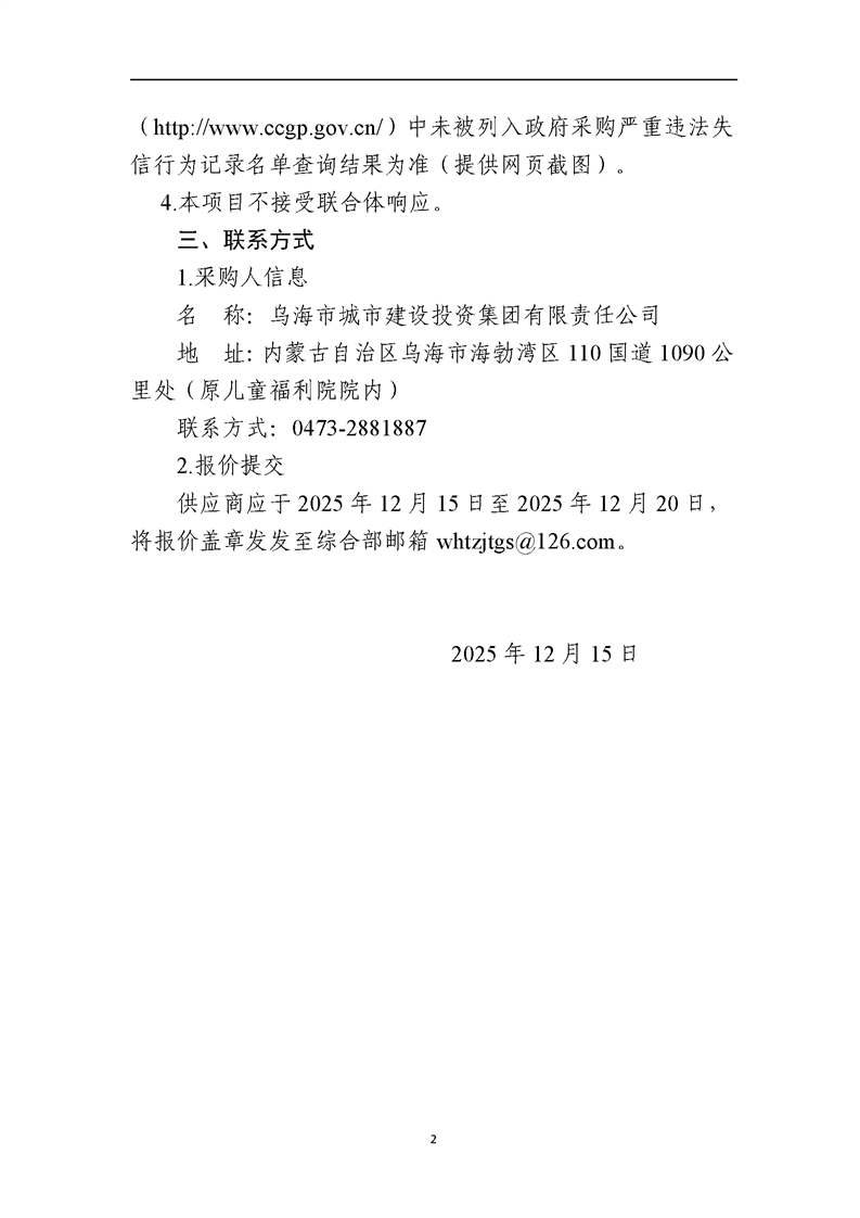 - 2025-11-07烏海市濱河城市運營服務(wù)有限責(zé)任公司中大型電動掃地機(車)供應(yīng)項目詢價文件