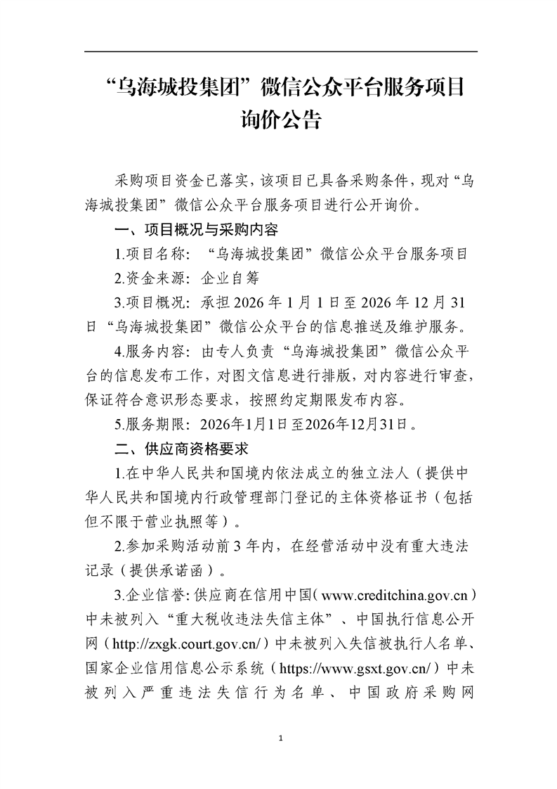 - 2025-10-14烏海市城市建設(shè)投資集團有限責(zé)任公司關(guān)于終止與內(nèi)蒙古華格項目管理咨詢有限責(zé)任公司業(yè)務(wù)合作的通知