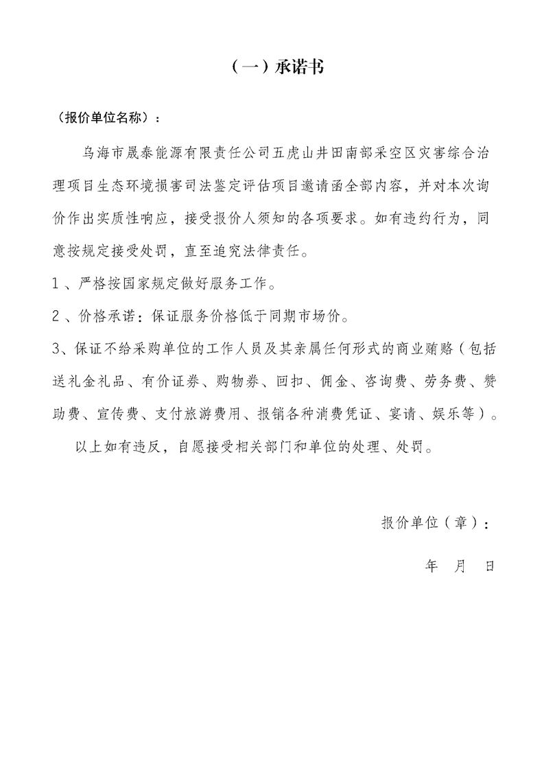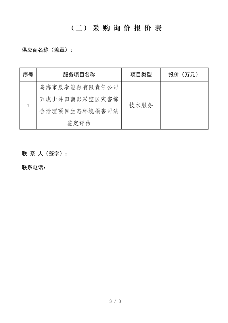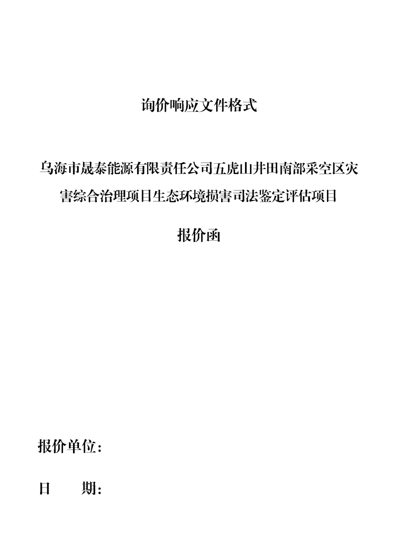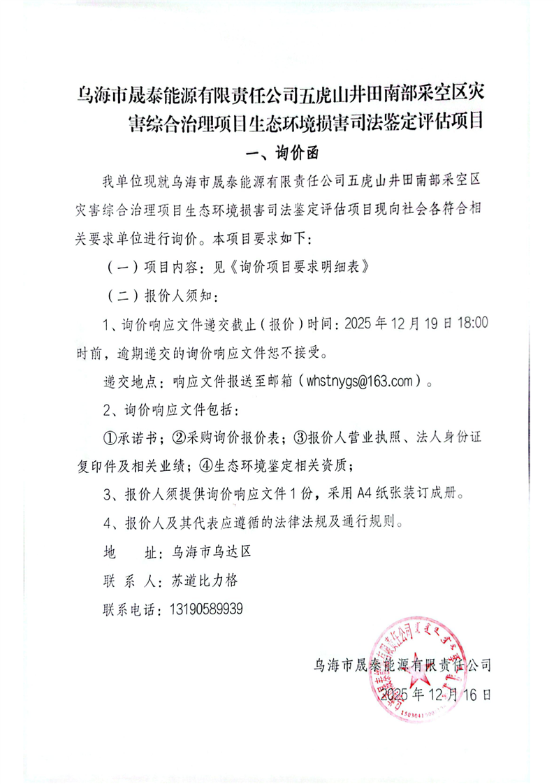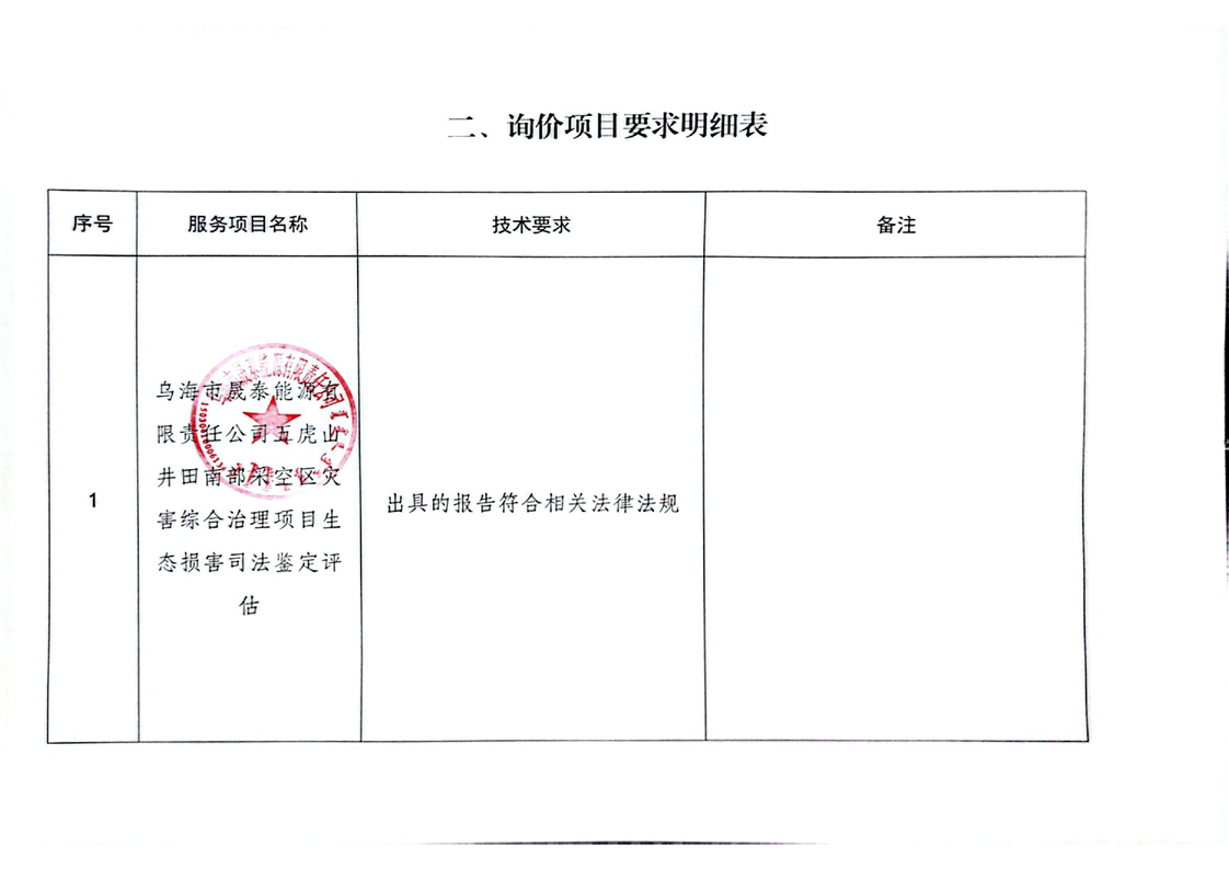 烏海市晟泰能源有限責(zé)任公司五虎山井田南部采空區(qū)災(zāi)害綜合治理項(xiàng)目生態(tài)環(huán)境損害司法鑒定評估項(xiàng)目詢價(jià)公告