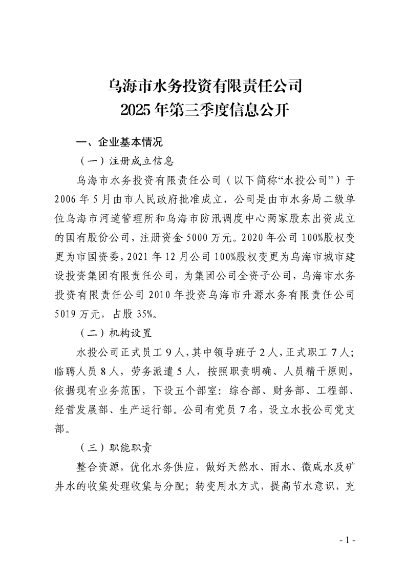 - 2025-04-22烏海市水務(wù)投資有限責(zé)任公司2025年第一季度信息公開