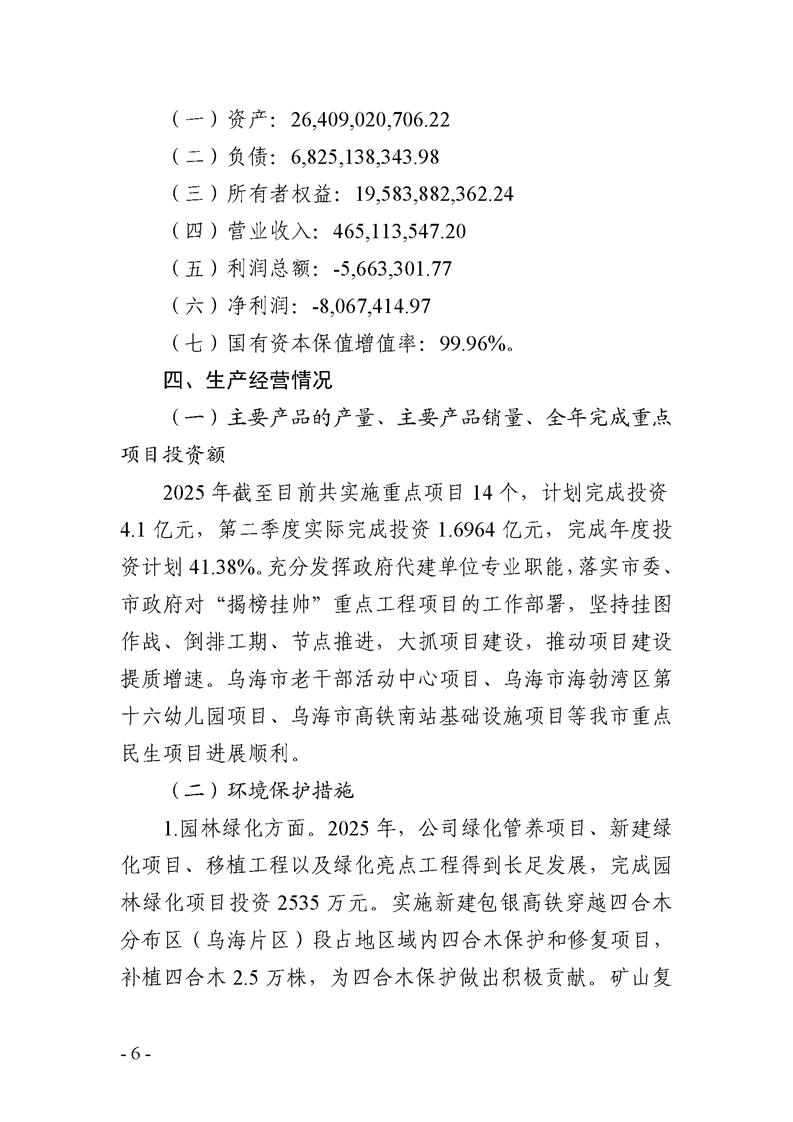烏海市城市建設(shè)投資集團(tuán)有限責(zé)任公司 2025年度第二季度信息公開報(bào)告