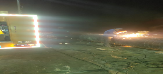 電焊組的師傅們頭戴面罩,手持焊槍,瞬間火花四濺,在黑暗中綻放出奪目光芒,熟練地進(jìn)行切割與焊接工作,其他人員則全力投入到拆卸工作中,他們齊心協(xié)力,將DN800蝶閥、DN800鑄鐵乙管、三通、伸縮器等部件逐一拆卸。盡管汗水濕透了衣衫,雙手被工具磨出了水泡,但沒有一個人喊累,所有人的目光都堅定地聚焦在搶修任務(wù)上。