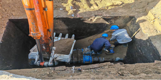 管網(wǎng)所接到通知后,宛如接到?jīng)_鋒號角的戰(zhàn)士,迅速行動。他們深知,每一秒的延誤都可能給居民生活帶來更大的不便。僅僅十幾分鐘,搶修人員就攜帶專業(yè)工具和設(shè)備,立刻啟動緊急預(yù)案,四個班組和電焊組全體出動,一場與時間賽跑的搶修戰(zhàn)斗就此打響。